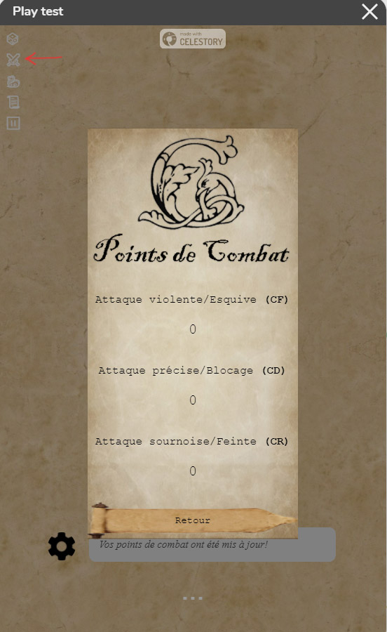 Je viens de changer l'affichage des points de combat. Ils sont désormais visibles dans le menu!