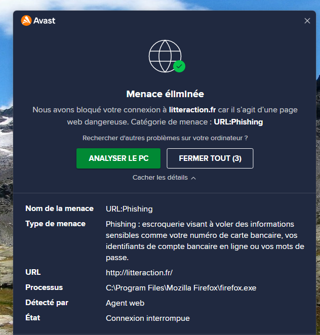 Mais bon ça fait bien longtemps que je n'utilise que Windows Defender, amplement suffisant pour moi.
